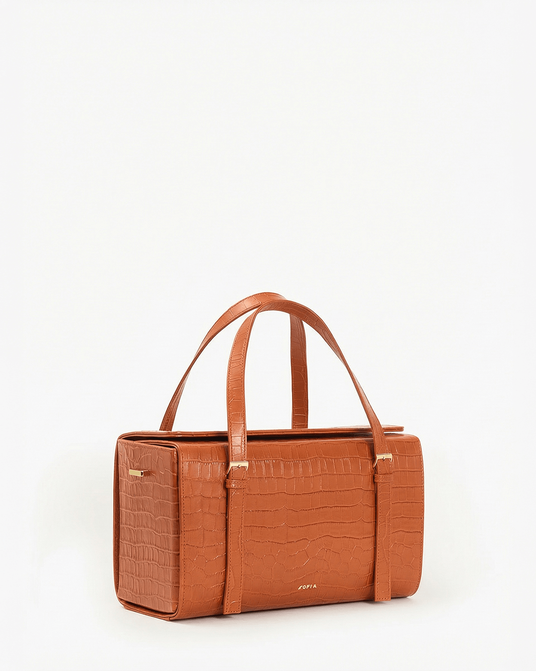 Borsa a bauletto rigida in pelle, foderata in cotone. Tracolla