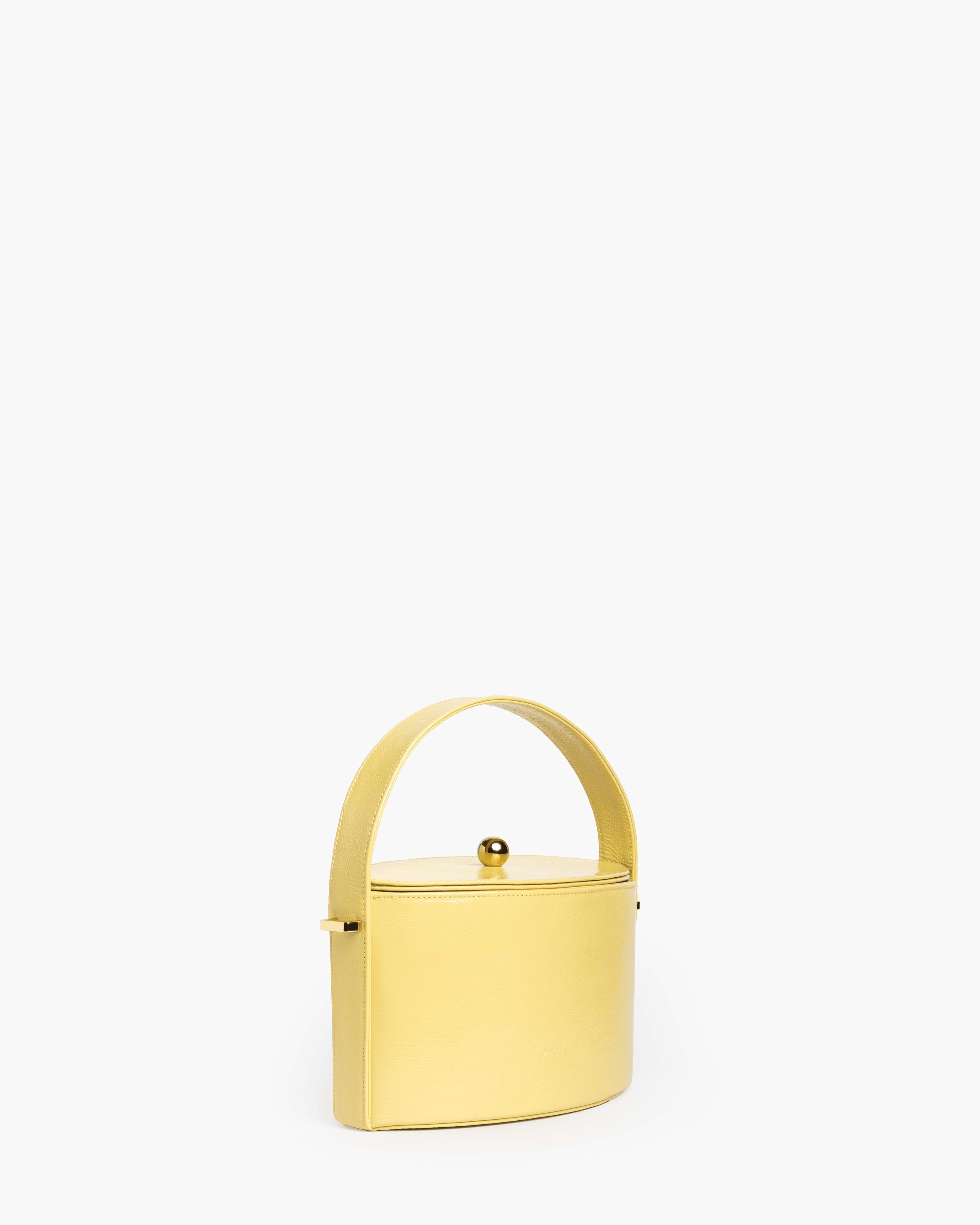 Secchiello a mano o tracolla rigido in pelle, foderato in cotone.
