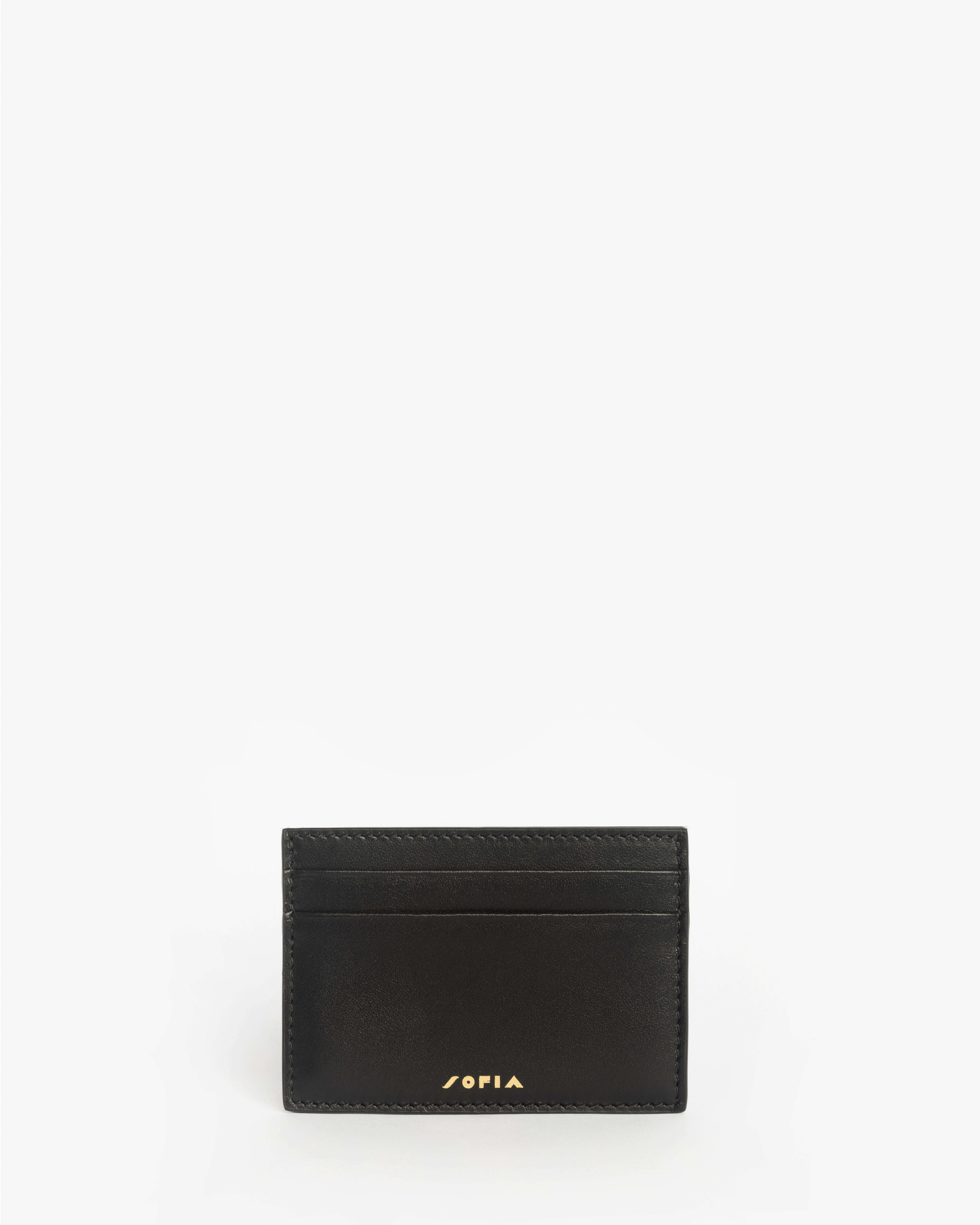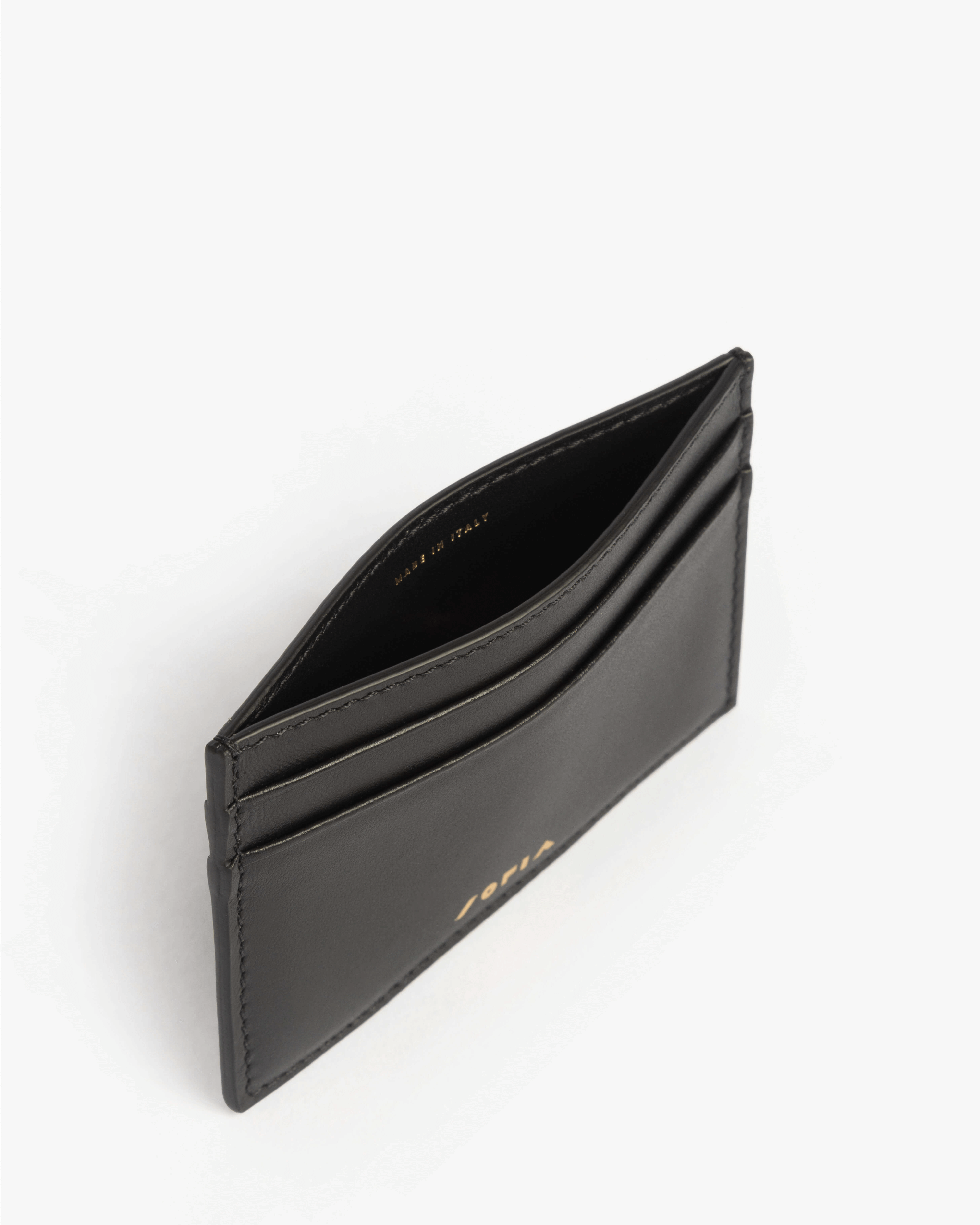 Portacarte bidimensionale in pelle nera con sei spazi per tessere e fe